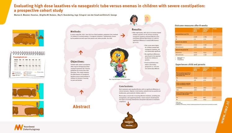 Eerder dit jaar verscheen het artikel “Evaluating high dose laxatives via nasogastric tube versus enemas in children with severe constipation: a prospective cohort study” van Noordwest kinderverpleegkundige Marion Meester-Soonius in het internationale tijdschrift BMC Pediatrics.